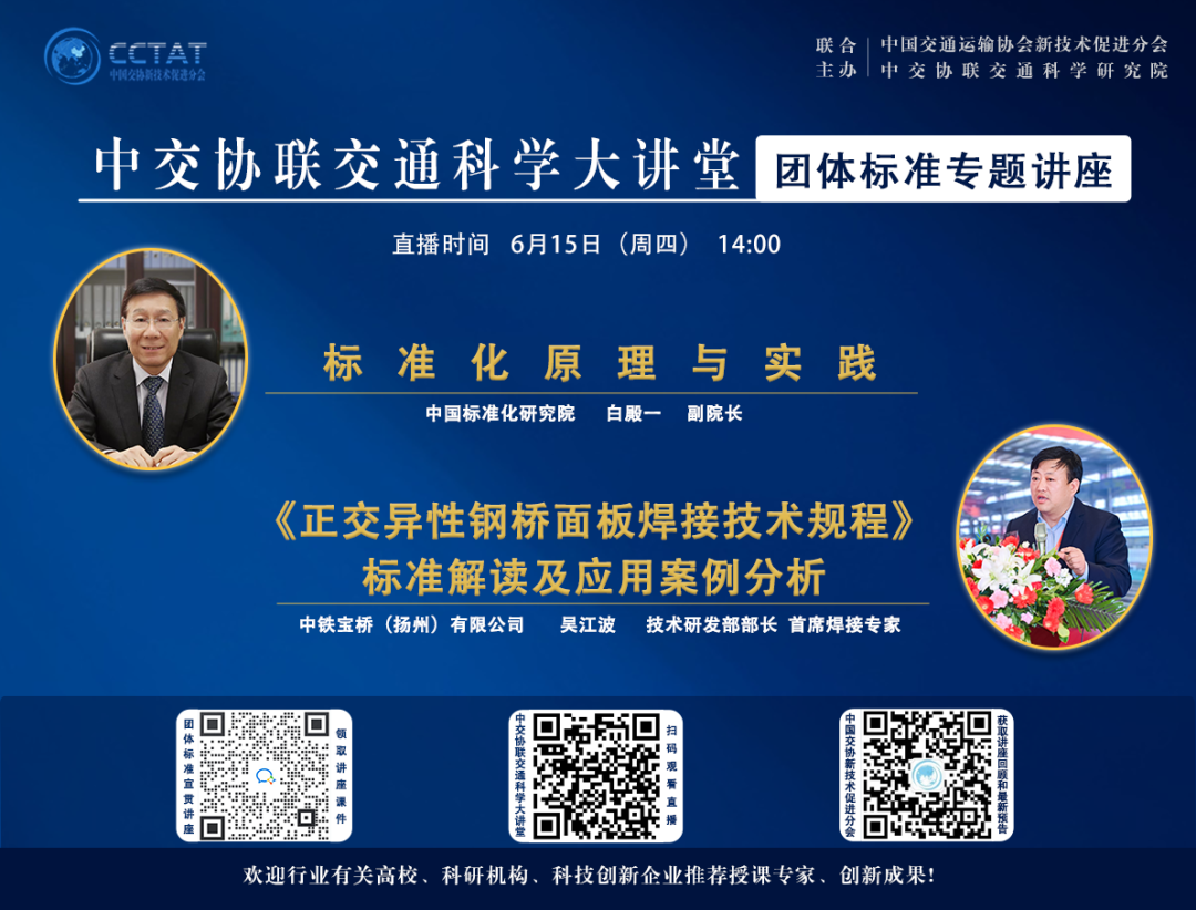 團標講座┃“標準化原理與實踐講座暨《正交異性鋼橋面板焊接技術規程》團體標準宣貫”直播預告