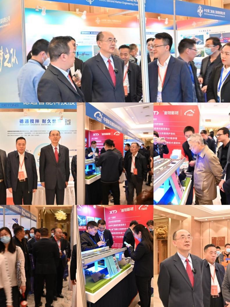 會議期間,陳政清院士、交通運輸部專家委員會周偉主任等領導同參會代表在展覽區域與展商進行咨詢洽談交流并合影留念,場面熱烈。