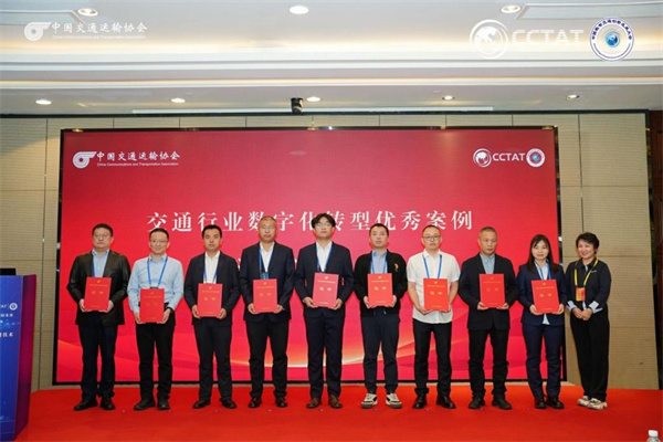 為推動交通運輸高質(zhì)量發(fā)展,發(fā)揮相關(guān)企業(yè)在數(shù)字化轉(zhuǎn)型過程中典型示范引領(lǐng)作用,經(jīng)中國交通運輸協(xié)會批準,新技術(shù)促進分會開展“交通行業(yè)數(shù)字化轉(zhuǎn)型”典型案例征集推薦工作。會議上,中國交通運輸協(xié)會新技術(shù)促進分會副會長兼秘書長于丁、副秘書長張小圃、杜鵑分別為榮獲“交通行業(yè)數(shù)字化轉(zhuǎn)型”優(yōu)秀案例中的高速公路行業(yè)優(yōu)秀案例項目代表頒發(fā)榮譽證書。
